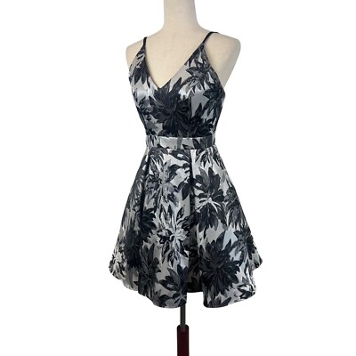 Aqua Brand Dress Floral Fit & Flare Cocktail Dress Black Silver Size 0 $458