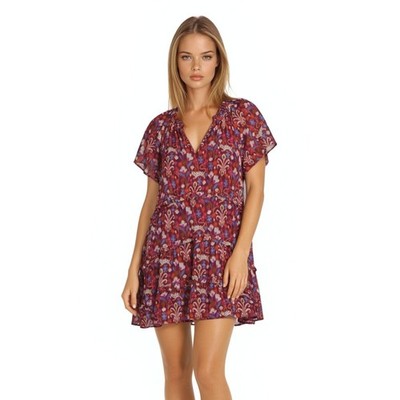Anthropologie Dress Women's Size Large Red Multi Damask Floral Tiered Mini
