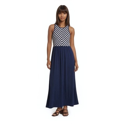 Toad&Co Maxi Dress Women's Size Medium Navy White Chevron Stripe Organic Cotton