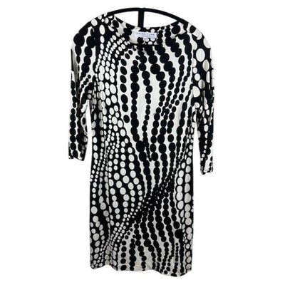 Trina Turk Dress Women's Size 12 Black White Dot Print Midi 3/4 Sleeve