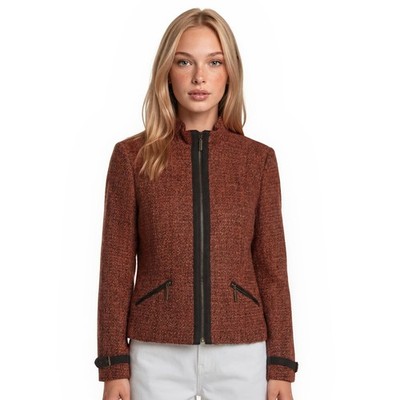 The Limited Vintage Blazer Jacket Women Size Large Rust Tweed Wool Blnd Full Zip