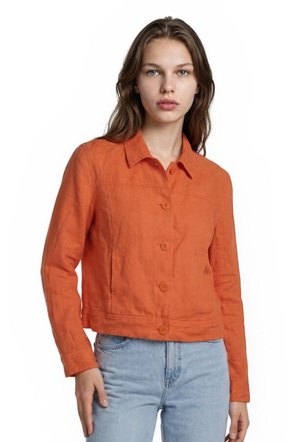 Talbots Jacket Women's Size 10P Petite Orange Linen Blend Cropped Blazer Lined