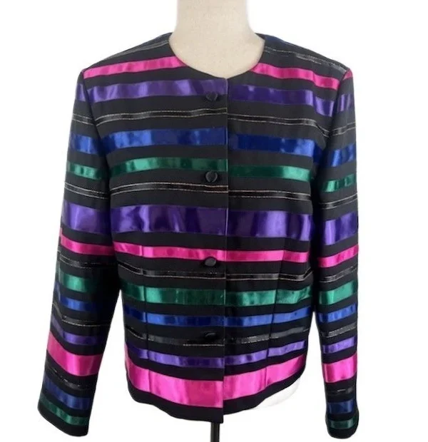 Chic Talbots Holiday Multicolor Cocktail Blazer Jacket Top Women's Size 10 Y2K