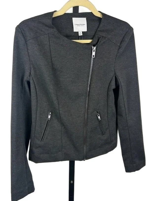 Catherine Malandrino Runway Style Moto Jacket Gray Full Zip Size Smal