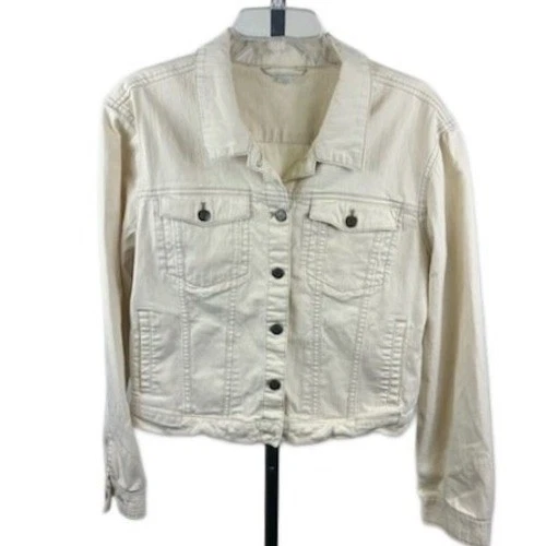 Garnet Hill Cream Denim Jacket Coat Women's Size 12 Button Front Pockets