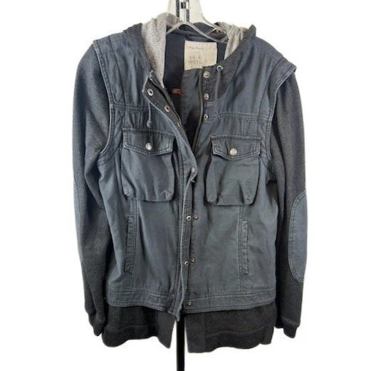 Free People Women's Size Small Charcoal Gray Hooded Utility Barn Jacket Coat