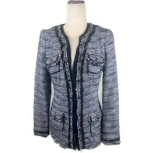 NWT White House Black Market Long Blazer Women's Size 4 Blue Tweed Jacket $180