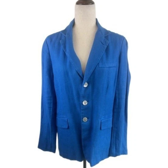 New Polo Ralph Lauren 100% Linen Blazer Jacket Blue Lined Women's Size 10