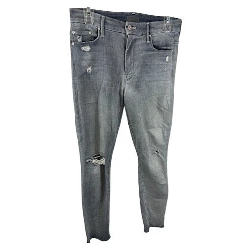 Mother HW Looker Ankle Fray Jeans Gray Distressed Denim Size 28