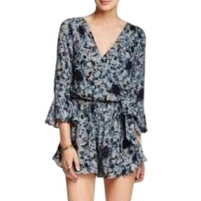 Free People Women's Floral Print Surplice Romper Short Jumpsuit Sizs Small