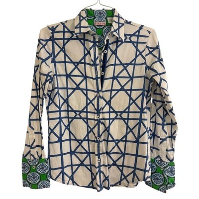 Stylish Tizzie Geometric Print Long Sleeve Button Down Shirt Blouse Size Medium