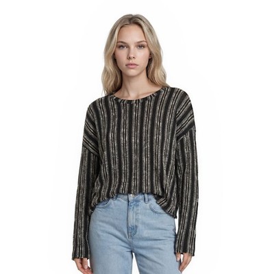 Storia Sweater Women's Size Small Black Striped Cropped Knit Scoop Neck Top