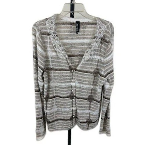 Berek Sweater Women's Size XXL Pearl Beaded Striped Cardigan Vintage Y2K Jewels