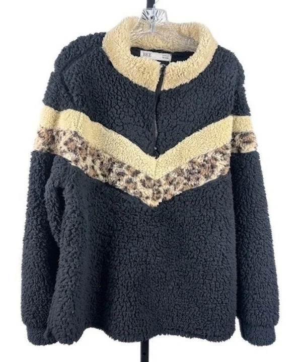 BKE Sherpa Fleece Women's Size Large Leopard Chevron Sherpa 1/4 Zip Pullover
