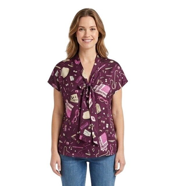 Talbots Silk Blouse Women's Size Petite Small PS Plum Tie Top Purses Fashion
