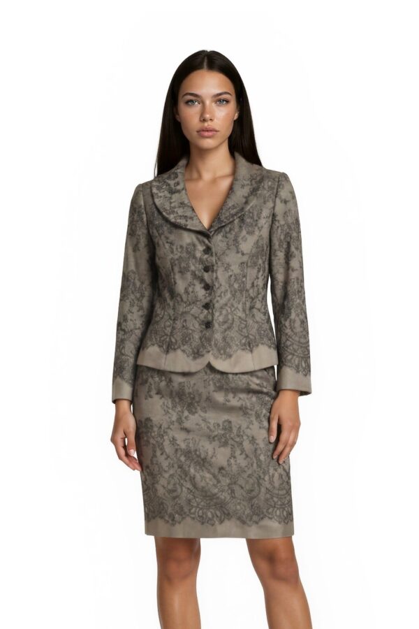 Talbots Skirt Suit Women's Size 10P Gold Black Lace Floral Blazer Set Cocktail