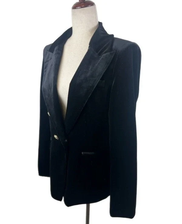 Choklate Paris Black Velvet Blazer Gold Buttons Jacket Coat Women's Size 10