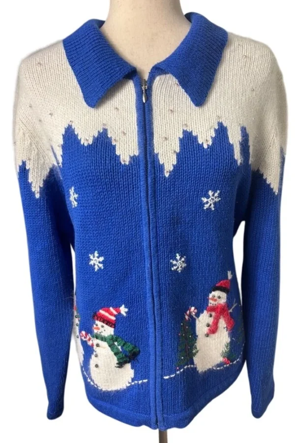 Croft & Barrow Vintage Full Zip Cardigan Snowman Sweater Women's Size Large