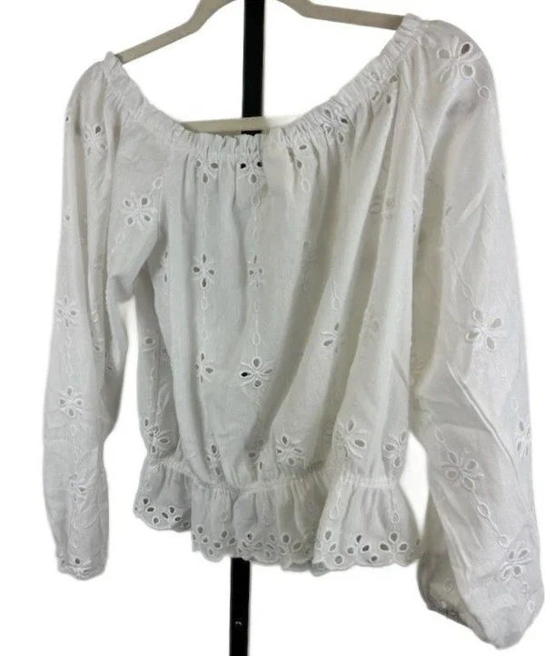 H&M Women's Large White Eyelet Off Shoulder Peasant Blouse Ruffle Cottagecore