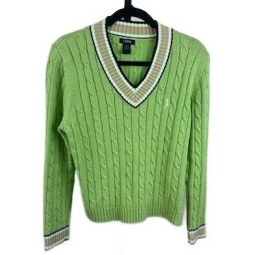 IZOD Sweater Women's Size Large Green Cable Knit V-Neck Golf Y2K Collegiate