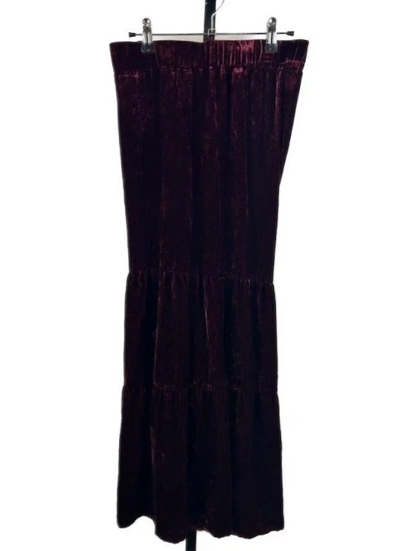 JW Los Angeles Women's Size Small Burgundy Velvet Tiered Maxi Wide Leg Pants