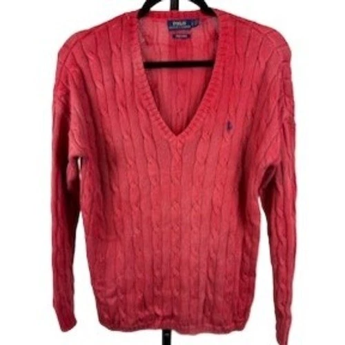 Polo Ralph Lauren Sweater Women's Size Small Coral Cable Knit V Neck Pima Cotton