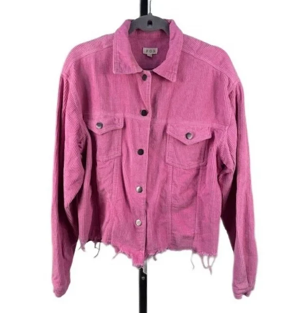 POL Anthropologie Women's Medium Pink Corduroy Cropped Jacket Raw Hem Distressed