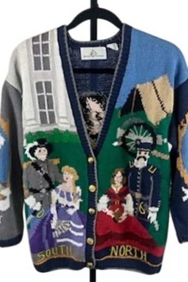 RARE Vintage Design Options Americana Cardigan Hand-Knit Abraham Lincoln Small