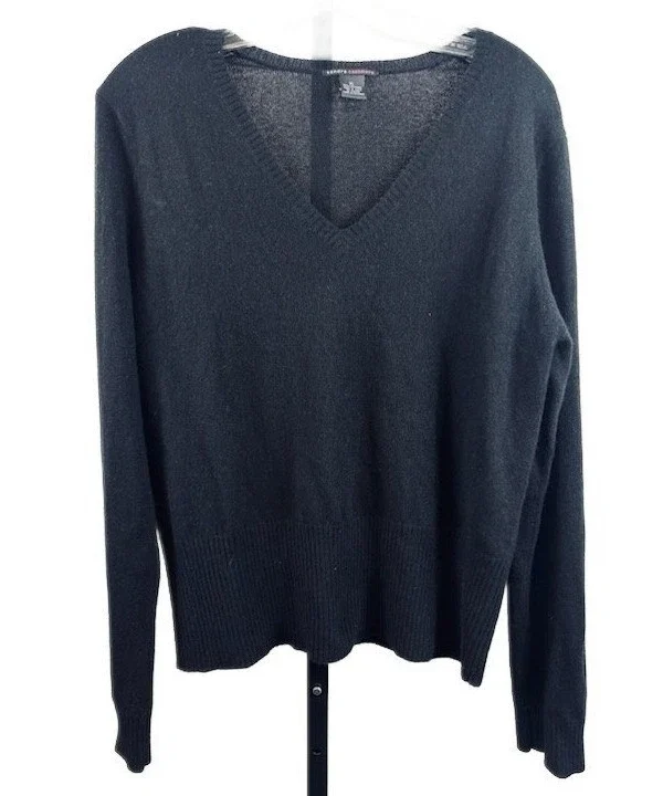 Sandra Women's Size XL Black Cashmere V-Neck Long Sleeve Sweater