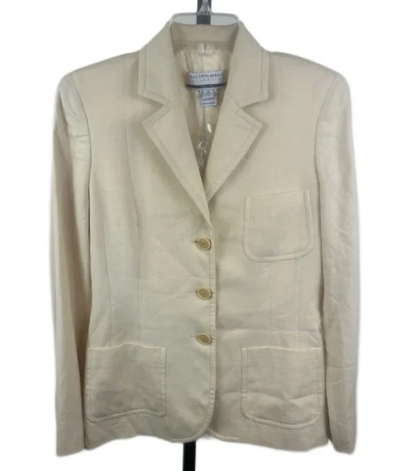 Saks Fifth Avenue Collection Blazer Women's Size 8 Cream Beige Linen Silk Jacket