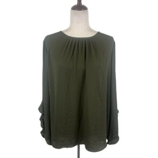 Simply Vera Vera Wang Olive Green Ruffle Sleeve Long Sleeve Blouse Top Size XL