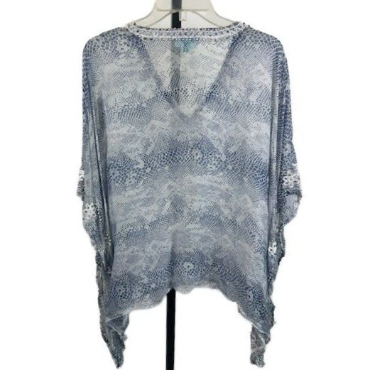 TAJ by Sabrina Crippa Women's Size Small Blue White Snake Beaded Kaftan Silk
