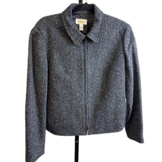 Talbots Blazer Women's Size 10 Gray Tweed Full Zip Jacket Wool Silk Vintage