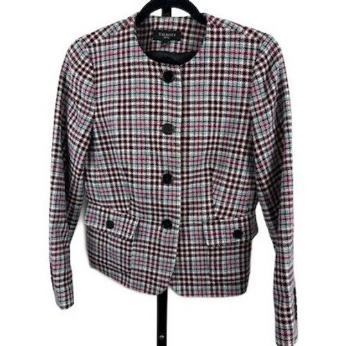 Talbots Blazer Women's Size 8P Petite Plaid Collarless Pink Green Houndstooth