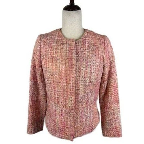 Talbots Pink Tweed Blazer Jacket Women's Size 6P Career Business Casual Petite