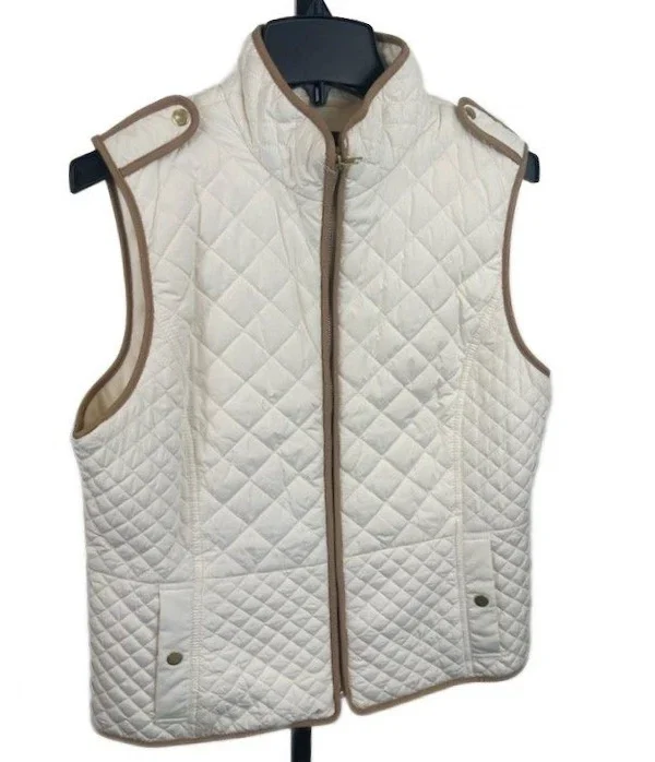 Talbots Quilted Vest Cream Full Zip Snap Pockets Women's Size Large Petite LP