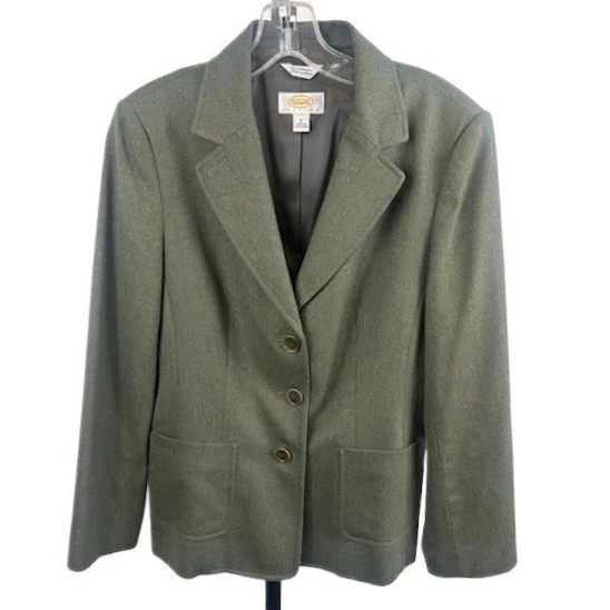 Talbots Olive Wool Lycra Tweed Tailored Blazer Jacket Equestrian Size 8 Petite