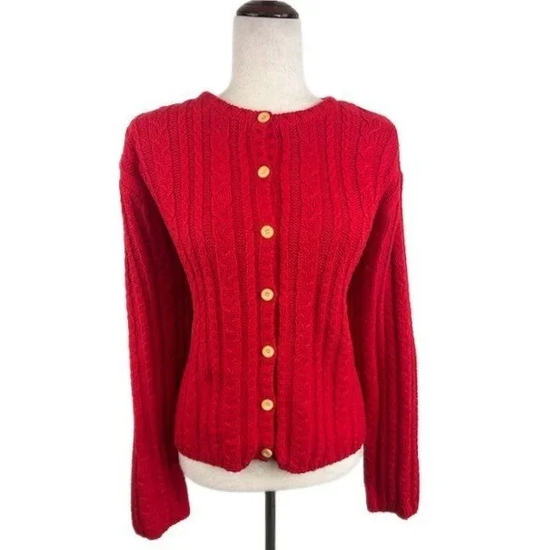 Talbots Red Cable Knit Cardigan Button Front Cotton Classic Sweater Size XL