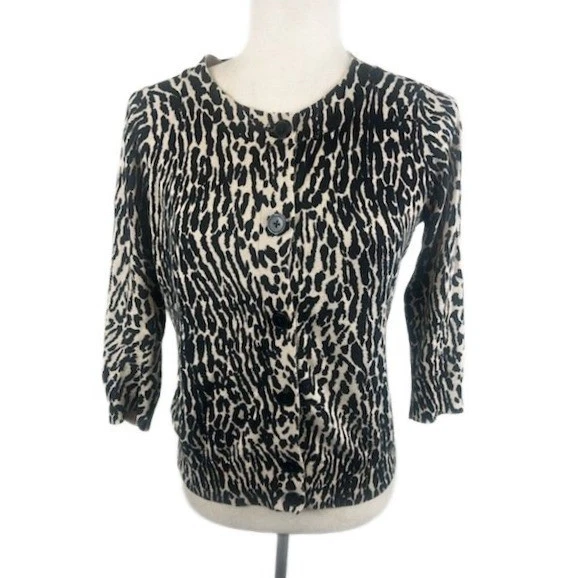 Talbots Women's Size Small Leopard Print 3/4 Sleeve Button-Up Cardigan Sweater