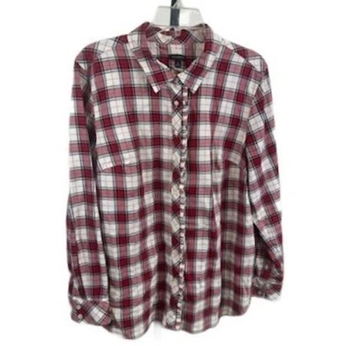 Talbots Women's Size XL Red Plaid Long Sleeve Flannel Button Top Blouse Shirt