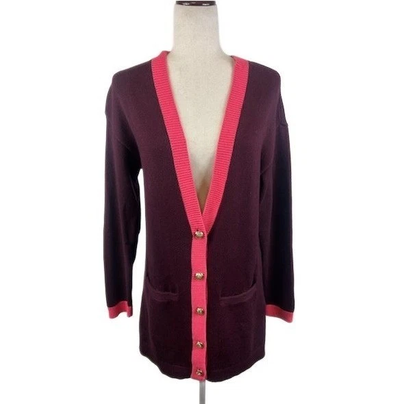 Talbots Women's Size Small Burgundy Button Cardigan Long Sweater Pink Collegiate