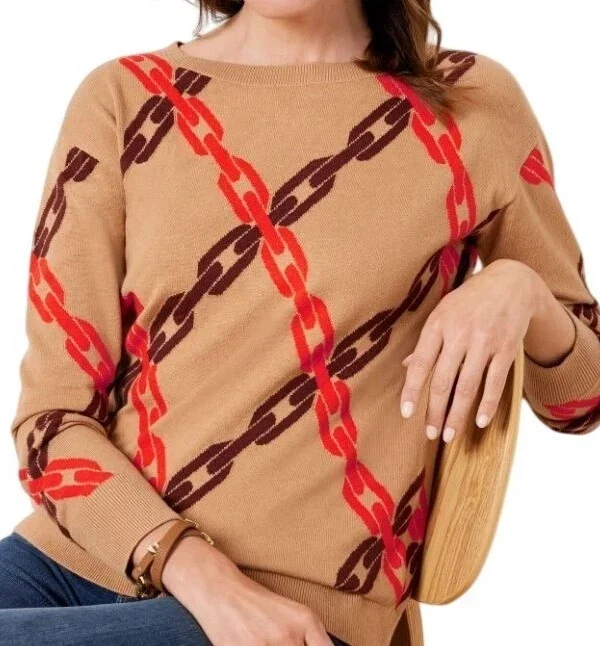 Talbots Women's Chain Print Knit Sweater Brown Orange Long Sleeve Size Small