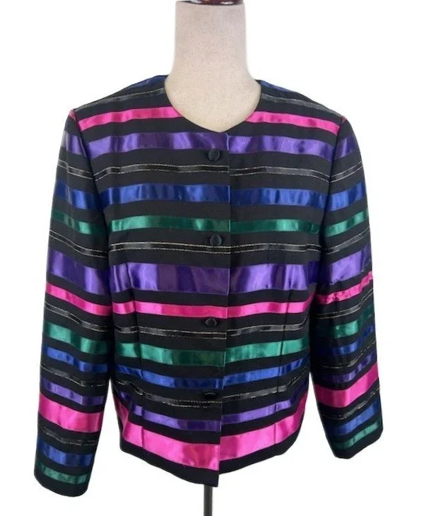 Talbots Women's Colorful Stripe Button Front Blazer Jacket Holiday Party Size 12