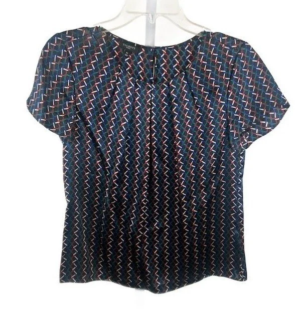 Talbots Women's Size 6P Petite 100% Silk Blouse Geometric Print Short Sleeve