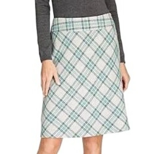 Talbots Women's Size 8 Gray Teal Plaid Wool Blend Knee Length Skirt