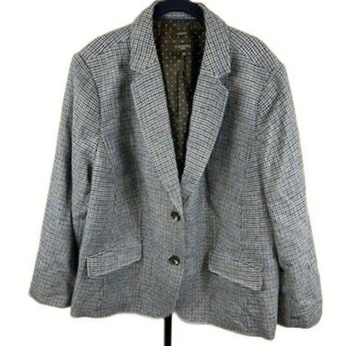 Talbots Women's Size 24W Blue Gray Houndstooth Button Front Career Blazer Jacket
