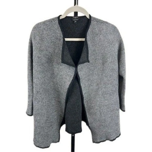 Talbots Women's Size Large Petite Merino Wool Herringbone Open-Front Cardigan