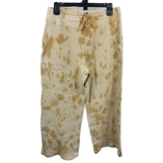 Toad&Co Tie-Dye Yellow Waffle Knit Crop Jogger Wide Leg Pants Size Large Lounge