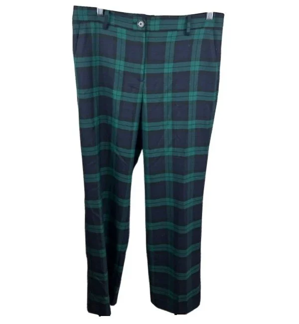 Talbots Women's Size 10 Plaid Wool Blend Pants Green Navy Straight Leg