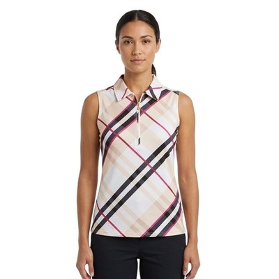 NWT SanSoleil Sleeveless Polo Women's Size Small Pink Plaid UV 50 Golf Top Shirt